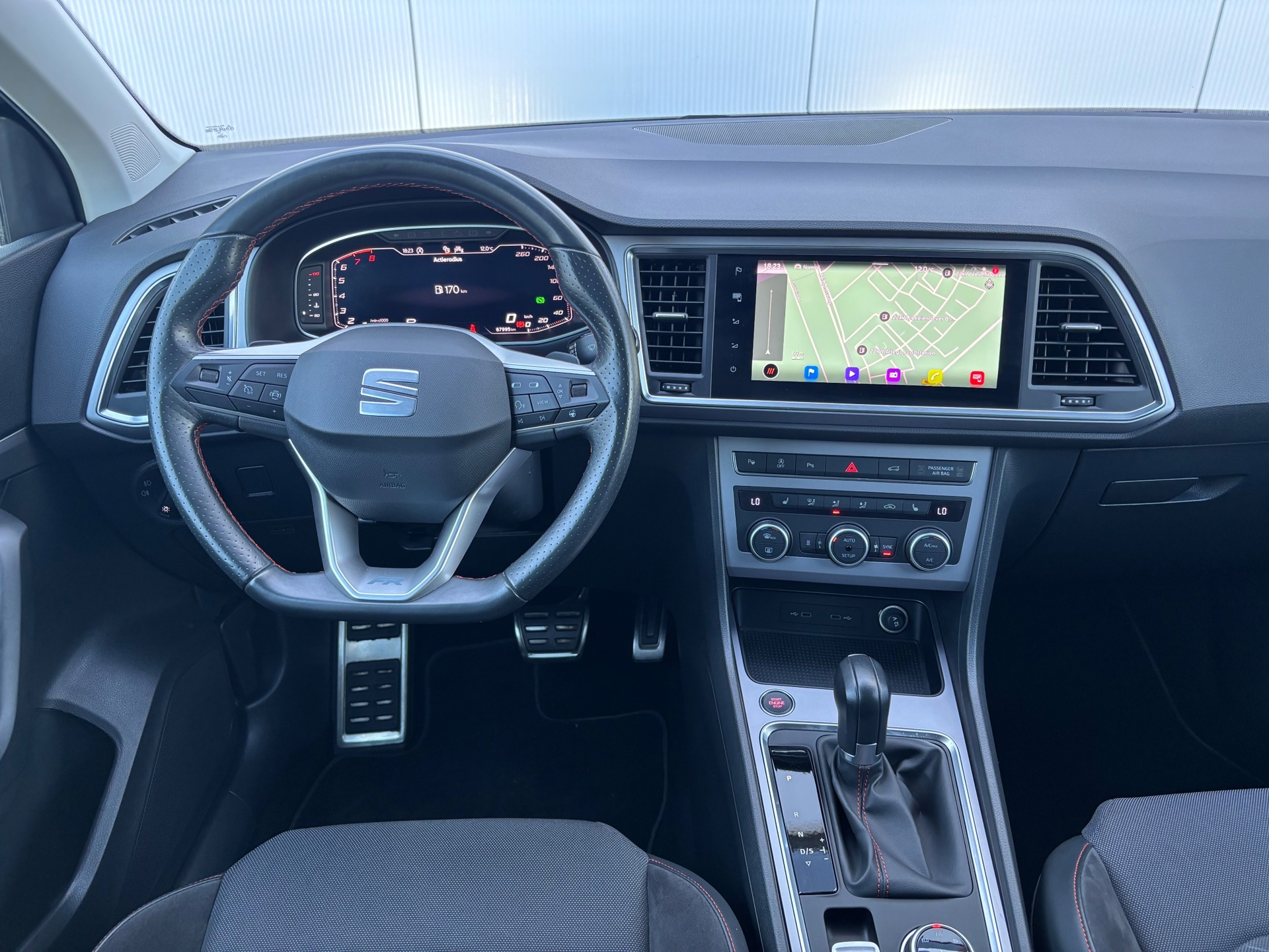 Nette Seat Ateca met het sportieve FR-Line pakket! Deze auto heeft een krachtige 1.5 benzinemotor met 150pk, gekoppeld aan een soepele automaat. Deze auto is voorzien van o.a. achteruitrijcamera, automatische airconditioning (climate control), Apple Carplay / Android Auto, cruise control, DAB+ radio, keyless entry en start, LED verlichting, lichtmetalen velgen 18 inch, metallic lak, navigatiesysteem, parkeerassistentie met parkeersensoren voor en achter, sportstoelen en sportstuur, start/stop, stuurwiel verwarmd, voorstoelen verwarmd, volledig digitaal instrumentenpaneel en een volledig wegklapbare trekhaak.