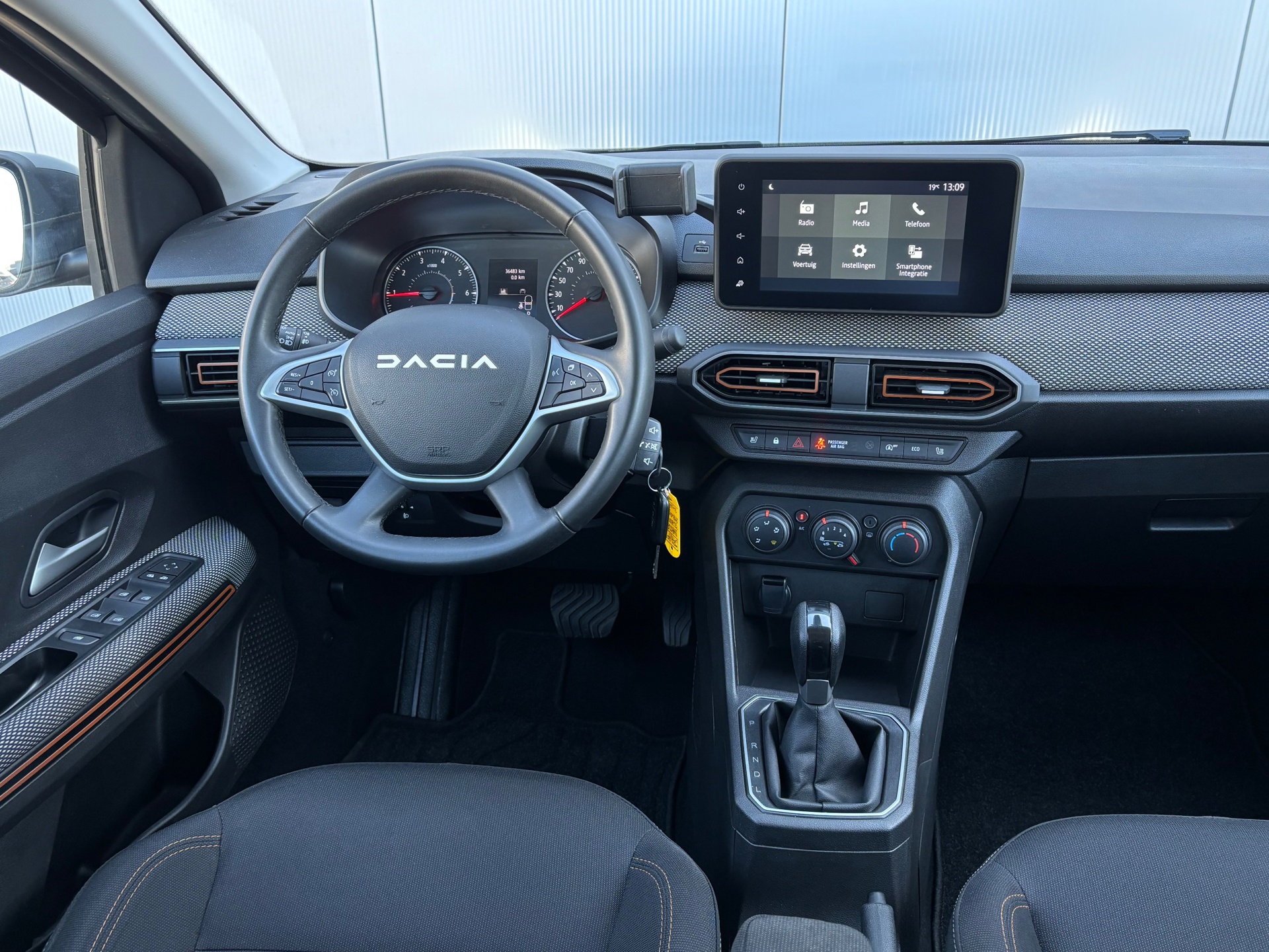 Nette Dacia Sandero Stepway met zuinige 1.0 benzinemotor, gekoppeld aan een soepele automaat. In de Expression uitvoering is deze Dacia onder andere voorzien van actieve remassistentie, airconditioning, achteruitrijcamera, touchscreen audiosysteem met ondersteuning van Apple Carplay en Android Auto, cruise control, DAB+ radio, dodehoek detectie, hill-hold functie, LED verlichting, 16 inch two-tone lichtmetalen velgen, metallic lak, parkeersensoren voor + achter, en verwarmbare voorstoelen. Met behulp van Apple Carplay en Android Auto kan onder andere het navigatiesysteem van een smartphone op het touchscreen bediend en getoond worden.